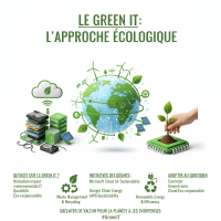 Le Green IT, désigne l’ensemble des pratiques mises en place pour réduire l’impact environnemental du secteur des technologies. Cela inclut la réduction de la consommation énergétique des équipements, la gestion des déchets électroniques, la conception de produits plus durables et la promotion de l’éco-responsabilité auprès des utilisateurs.