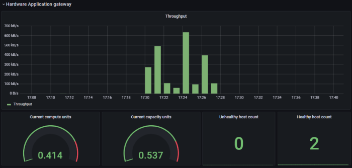 Dans notre exemple avec Grafana, on peut observer clairement la montée en charge lors de l’exécution des tests sur nos reverse proxy, tels que les Application Gateway d’Azure.