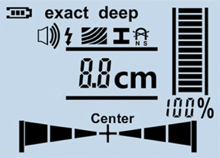 - Détecte les montants jusqu’à 38 mm (modèle profond) / 20 mm (mode exact) pour le mode bois