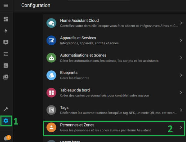Ouvrez Home Assistant et connectez-vous à votre compte. Cliquez sur l’icône “Configuration” (engrenage) dans le menu latéral gauche.