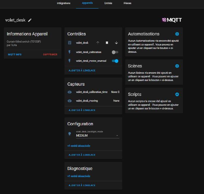 Dans cet article, nous avons exploré comment automatiser le contrôle des volets roulants en utilisant Home Assistant et des dispositifs LoraTap Curtain/blind switch (TS130F). Nous avons vu comment installer le module, l’intégrer à Home Assistant et configurer diverses automatisations pour gérer les volets en fonction de l’heure de la journée, de la position du soleil et de la température extérieure.