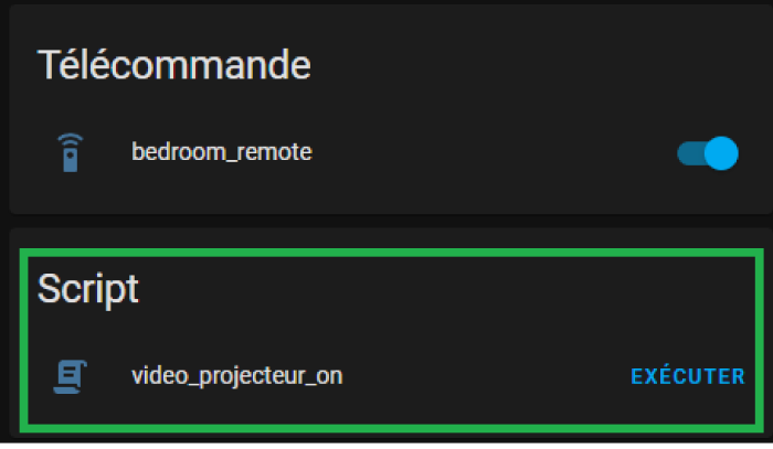 On redémarre Home Assistant et voilà, nous pouvons simuler notre bouton à tout moment en cliquant sur Exécuter :