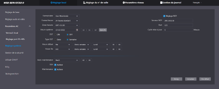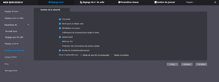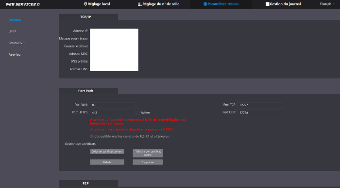 Protocole réseau | SIP; P2P; IPv4; UPnP; SNMP; DNS; DDNS; RTSP; RTP; TCP; UDP |