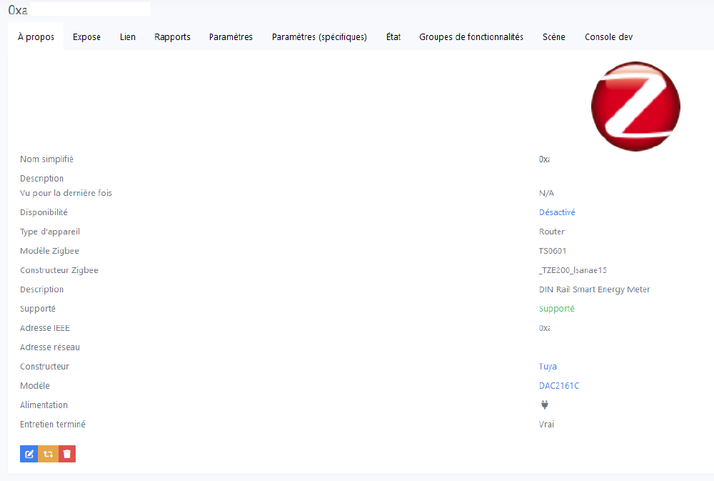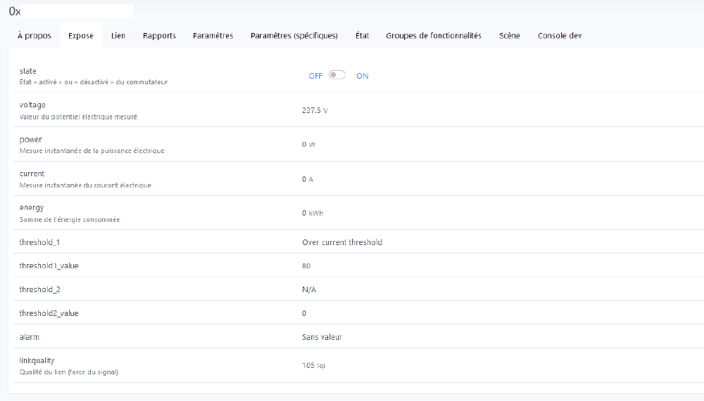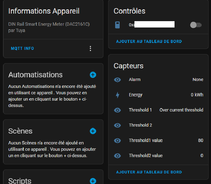 Ressemble beaucoup au TuYa TS0601_din sauf que celui ci permet de monter jusqu’à 80A. A l’heure où j’ai écris cet article il n’est pas reconnu nativement sur Z2M mais je vous montre l’astuce pour le remonter (très simple).