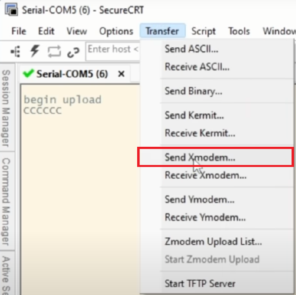 Et transférez le fichier nvm3_initfile.gbl que l’on trouve ici : blob:https://github.com/f0093fd8-abbe-43e8-b1b8-4c047461afbe toujours en cliquant sur Transfer et Send Xmodem.