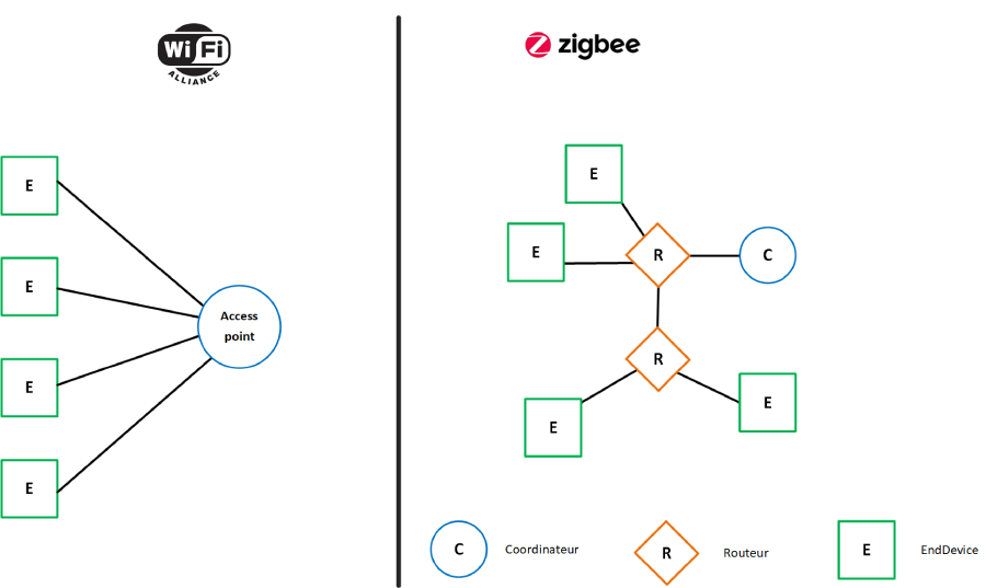 Pour comprendre un peu plus le Zigbee, il faut quelques son concepts. Ci-dessous vous trouverez une comparaison grossière avec le Wi-Fi.